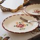陶器呈奶油淡黄色,边缘饰有赤土色花边