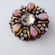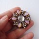 This vintage style glass opal rhinestone brooch is handmade from old and new components. Perfect for scarf, shawl, hat and lapel. It has a brand signature plate with mdmB. Comes in white gift box.