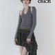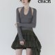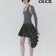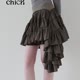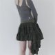 軍綠色 流浪風多層拖尾不規則短裙 拼接半身蛋糕裙