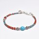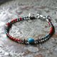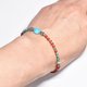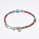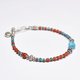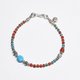 这是一款由 Kingman 绿松石、糖果色与蓝绿色白芯琉璃珠、Karen 银饰串制而成的优雅手链。