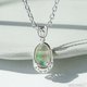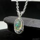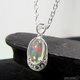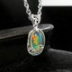 这款吊坠采用曲线和镂空设计的底座,镶嵌着一颗高透明度、色彩鲜艳的蛋白石。