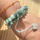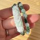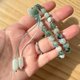 两侧搭配从深苔绿色到浅青白与淡灰的切面圆珠和长方珠。结尾是一朵四瓣花和椭圆玉珠,为整体增添安静的节奏感。