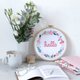 – Sample shown here was made on 18 count white aida and framed in a 8” hoop