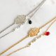 我们将土耳其制造的法蒂玛手部零件与天然珍珠母贝和捷克珠子结合,打造出具有民族风情的双项圈项链。