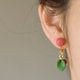 - It is a piercing (earrings) of yamamomo fruit and shaking leaves. It is an asymmetrical design that added Czech beads and bamboo sticks to the leaves' shadows.