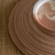 瓷土混合氧化铁经过练土、混土、拉坯、修坯成形,完成搅胎作品。每一件搅胎作品都有不同的纹路。没有上釉的抷体在经过釉烧后,再经过研磨,让使用者能够触摸到陶土的肌理。这件作品使用还原瓦斯窑烧制。烧成温度为1240度。