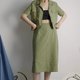 - 试衣模特 身高164CM 体重50KG. 合体小短袖,温柔的芥末绿,满满文艺风。