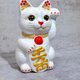 这尊日本清水烧花结晶招财猫散发出华丽而高贵的气息,纯白的花结晶釉面细腻宛如雪花绽放