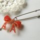 A cute shawl pin with a plump, three-dimensional red ribbon swaying ♪