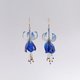 紫红色花朵形状的耳环。有两种颜色可供选择:粉色和蓝色。手工装饰,以独特的作者技术制成。