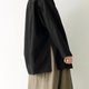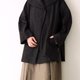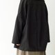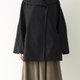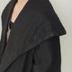 中长版的风衣外套在领子上做近似色的布料拼接,整体是散状与下摆茧型收拢的聚合。