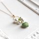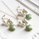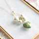 其中一颗与众不同的绿色捷克珠,在棉珍珠中闪耀,成为鲜明的点缀。