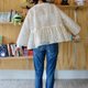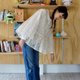 此款蕾丝有比较挺的雪纺纱做基底,所以穿起来很立体,宽宽的袖子让整个版型更加的俏皮,下摆的波浪折度很有浪漫气息,依照搭配的单品不同可以呈现非常多的样貌喔!
