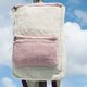 ▲以手织针织布+拼色棉麻布制作而成,手工棉的触感搭配鲜艳的配色,组成鲜明的色彩,是搭配衣着的好物,回归自然的美好经验