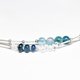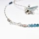 这是一条由冰柱型蓝晶石、饱满的印度银铃、蓝绿玛瑙、靛蓝色珠子&赫基默钻石、细致管状银珠等串连而成的纤细项链。