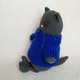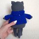 - Fingering weight acrylic yarn next colors: gray, about 1.5 oz (40 g) for body; pink, about 0.1 oz (2-3 g) for paws; blue, about 1.5 oz (40 g) for sweater; black, about 2 yds (2 m) for for embroidering the paws;