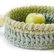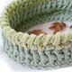 Made from T-shirt yarn, the bottom is made of organic glass. The bottom is hand-painted with acrylic paints.