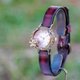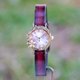 这是一款镶配有樱花的手表,浅粉色玻璃上带有微微的大理石纹。