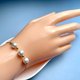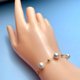 三颗7-8mm的强光天然淡水珍珠可媲美akoya,由四枚硅胶小金珠间隔,三珠连缀显得小巧秀丽,而当你自己调节小金珠的间隔,就会营造出不同的佩戴风格,佩戴于腕间呈现出稀有美好的满天星炫彩,纱织小姐还特别在约17.5cm在链条上配置了针式接头,让你在腕间垂下一条纤细摇摆的流苏,并且适合你的各种腕间形态,精致感与舒适感兼备。你还可以把其他任何自己喜欢的珠子搭配在这条手链上,形成你自己的不同风格。