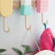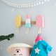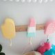 Wall clothes Hanger with ice cream hooks for nursery. Made from natural wood (plastic hooks). Cute wall decor. Great idea for baby gift