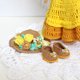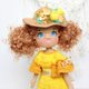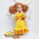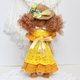 Cllectible stuffed doll in a yellow dress.