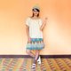 Mini skirt which patchworked many triangles.