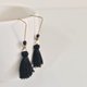 黑色流苏、方珠和黄铜丝组成的挂式耳环。