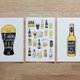 一组包含 3 张啤酒明信片,手绘的设计,画出我们最爱的饮料 - 啤酒。