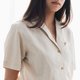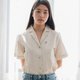 - Linen cream women shirt straight fit with plane origami embroidery