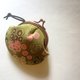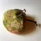 表布 抹茶绿花图样、里布 烟熏粉、口金 亮粉、绒绳 褐。