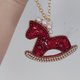 摇摇马造型胸针,红色骏马别针,赠礼象征新年意象。 此胸针亦可作为坠饰配戴。 尺寸 5x6 厘米 (约 2"x2.5")