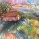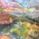 色彩丰富而柔和——浅紫、粉红云层、明亮金黄与自然绿意交织——将观者带入一个安静祥和的清晨景色。作品以多层堆色与细腻过渡呈现出印象派般的光影变化,散发着温暖、和平与大自然的诗意。