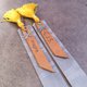 - 手工制作的皮革书签,采用分层设计,由灰色/银皮革和棕不对称顶层制成。 使用您的姓名、姓名首字母、特殊字词、符号或任何您喜欢的文字进行个人化设定。 书签上装饰有银蜻蜓饰品和明黄色丝绸流苏。