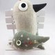 这是一只颜色较为素雅的鸟儿,翅膀上加上彩色绣线,增加色彩丰富 性,更增添手作风味。