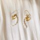 小巧可爱的米形珍珠串制成弧形线条,配上闪烁水晶爱心的流苏耳环,亦可不同方向配戴或自行微调珍珠弧度喔!