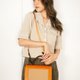 - 方型手提设计,意大利树膏牛皮搭配日本帆布。