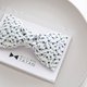 纯白底布上,点缀着数朵小巧可爱的花朵图案的领结。