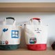 - 撞色水筒帆布束口包,背包前后两侧皆绣有米飞与她的朋友,圆柱造型。您可以手提也可以使用背带,轻巧、容量大。