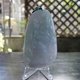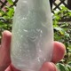 本件天然翡翠雕刻文殊菩萨,文殊菩萨为佛教四大菩萨之一,和普贤菩萨为释迦牟尼佛的左、右胁侍,三者合称为“华严三圣”。文殊菩萨智慧、辩才第一,为众菩萨之首,又被称为“大智文殊菩萨”。据佛教经典所载,文殊菩萨是过去世无量诸佛的老师,曾引导无数修行者证得佛果。文殊菩萨的造像特征,主要以宝狮为坐骑,乃以无畏的狮子吼震醒沉迷的众生,也是无量智慧的象征。本件文殊菩萨翡翠,头戴五叶宝冠,葫芦形发髻,长眉细目,双眼低垂,面庞端正,神态沉静内省。右肩竖立盛开莲花,右手持宝珠,帛带飘逸绕于肩臂,极具庄严之感。下着天衣绸裙,衣裙纹褶曲转自如,呈现柔软律动感,雍容华贵。右腿结跏趺坐,前俯卧宝狮,左腿屈膝弓起,呈自在坐姿,有宋代自在观音的艺术风格,姿态雍容大度,另翡翠反面雕刻一朵莲花, 莲花代表“出淤泥而不染”的那种独善其身,也解释为不因烦恼而有所牵绊。综观此件作品不愧是一件形式与内容结合得较为优秀之作,实属难得。
