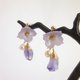 I made a springy earrings by combining purple flowers and freshwater pearls with rough cut amethyst.