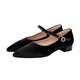 这款柔软的绒面平底鞋,点缀着精致的珍珠扣饰。