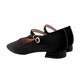 珍珠扣饰巧妙地吸引目光,衬托着鞋身的墨绿色调。