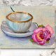 茶杯和玫瑰原创油画。