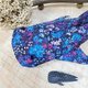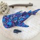 布料是选用美国棉布,上面的印花搭配让人联想到夜晚的星空与深海的交融,紫蓝色的基底像是静谧的夜空,而点缀的花朵则宛如漫天繁星,鲸鲨的眼睛是特别订制的蓝色扣子,不同角度折色出透亮闪烁带有蓝色星空的感觉。