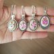 以丝带刺绣工艺打造的椭圆形花卉坠饰。 采用高品质布料、丝带及绣线精心制作。所有设计师套组皆以精美礼盒包装,确保运送安全。 尺寸:2 x 2.5 厘米 ✿ 立即出货