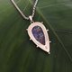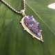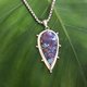 紫之剑 Purple Sword 我们创作了一个以杉石制成、宛如神话中剑的造型, 大尺寸的坠饰。 银质颗粒为点缀,增添细节。 当我看到这块石头时, 脑海中浮现了一位强大而美丽的战士形象。 她似了悟了“柔弱即是力量,力量亦可化为柔弱” 这世间的真理,平静地接受命运, 并倾尽全力活过自己的人生。 这是一件适合作为守护护身符佩戴的饰品。 ・杉石 縦45mm、横30mm ・Silver925