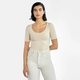 ・透过有机棉与弹性纤维灵活的运用混织,让面料舒适贴合身体,凸显您的优雅姿态。