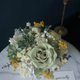 绿色康乃馨搭配抹茶色及柠檬黄玫瑰,营造恬静田园风光。使用日本大地农场有机永生不凋玫瑰/不凋绣球/不凋康乃馨,采用食用级染料。搭配绿色渐层色调不凋花叶材,好好照顾可以观赏3年以上喔~