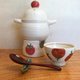 我涂了白色釉,并用红色颜料为西红柿上色。