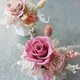 产品说明:永生玫瑰、绣球、太阳玫瑰、羊齿等花材。